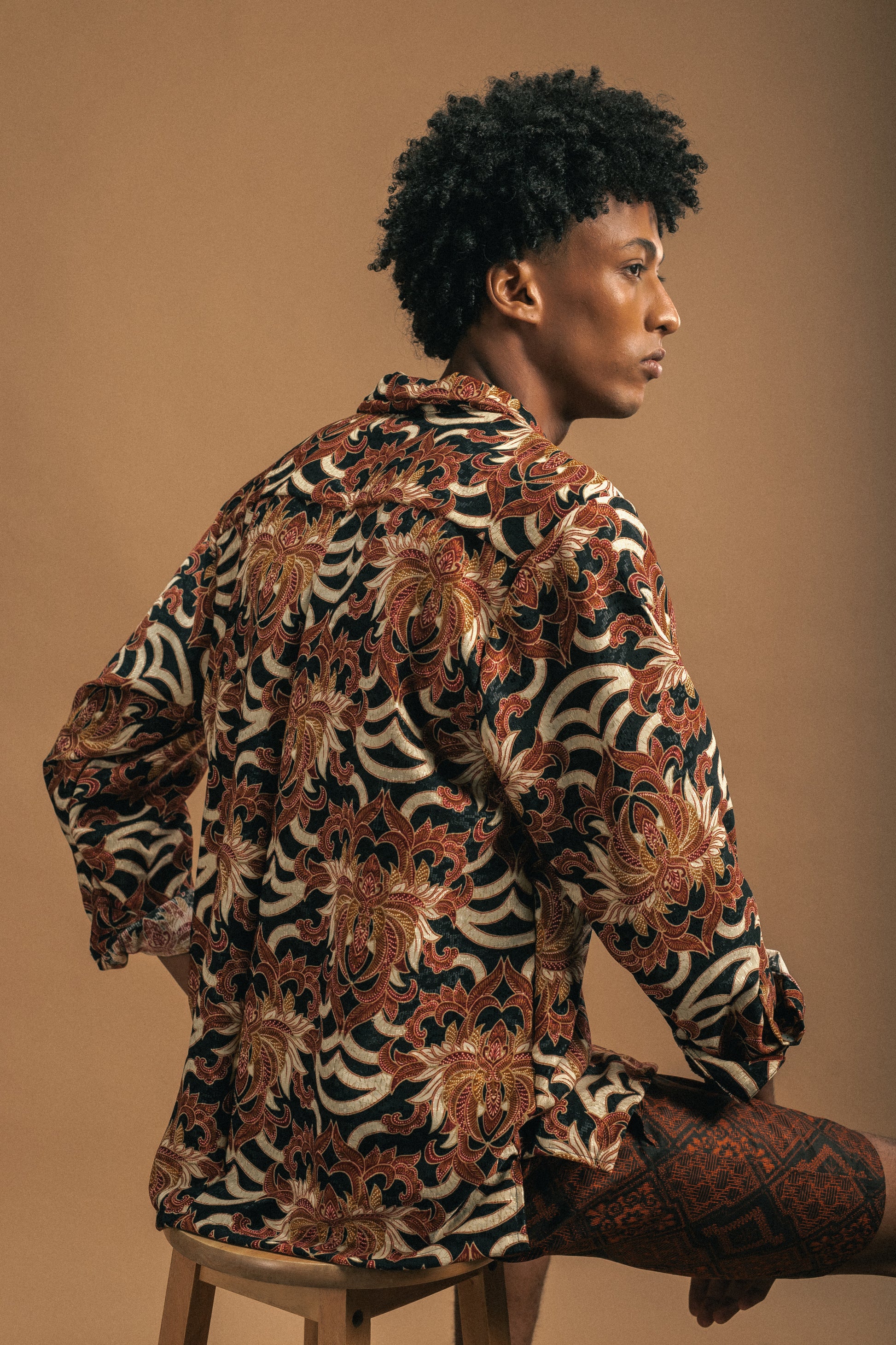 Unveiling the LocoManna Rust Lotus Batik Shirt — a warm, earthy statement piece crafted from traditional Balinese batik.